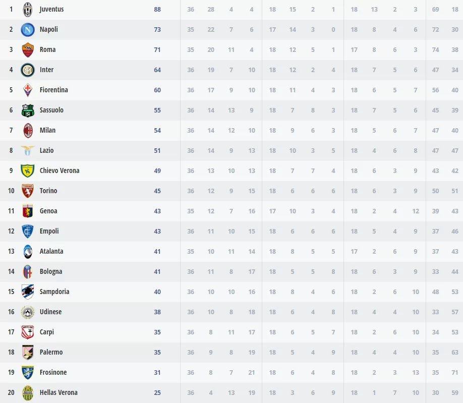 L’Inter perde all’Olimpico con la Lazio e dice addio al terzo posto. La Roma, infatti, è irraggiungibile a sette punti di distanza. Decisive le reti di Klose e Candreva su rigore. La sconfitta dei nerazzurri dà dunque la matematica certezza al Napoli e alla Roma di qualificarsi in Champions. Resta da stabilire soltanto quale squadra accederà direttamente ai gironi e chi ai preliminari della massima competizione europea.