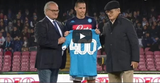 Marek Hamsik è stato premiato ieri sera al San Paolo prima del match con l’Atalanta per aver raggiunto uno storico record: le 400 presenze con la maglia del Napoli. Due ex bandiere azzurre – Beppe Bruscolotti e Luis Vinicio – gli hanno consegnato lo speciale premio. Ecco le immagini dal canale Youtube del club partenopeo: