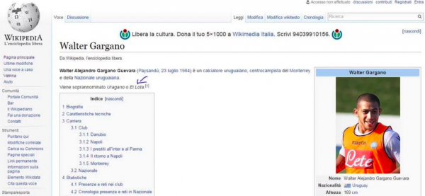 La loro vendetta non si è fatta attendere. Il soprannome di Gargano è sempre stato El Mota. Ma su Wikipedia, da questa sera, è cambiato: ora è El lota.