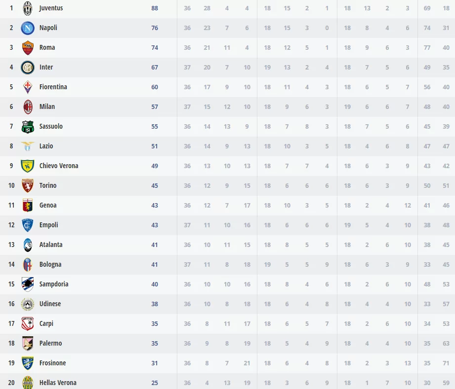 Il Milan ottiene un’importantissima vittoria a Bologna e ritorna momentaneamente al sesto posto. A decidere la gara il rigore trasformato da Carlos Bacca al 40′ del primo tempo. Adesso diventa fondamentale per il club meneghino l’ultima sfida con la Roma al San Siro. Una buona notizia per il Napoli impegnato nella lotta al secondo posto proprio con i giallorossi. L’Inter, invece, dopo la vittoria di questo pomeriggio con l’Empoli, conquista matematicamente la quarta posizione.
