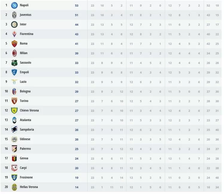 Adesso la vittoria è un obbligo per gli azzurri. La Roma, battendo il Chievo 3-0 grazie ai gol di Nainggolan, Rudiger e Pjanic, ha scavalcato momentaneamente il Napoli in classifica, portandosi al secondo posto con 77 punti. Vincendo stasera, gli azzurri si riporterebbero avanti e sabato prossimo basterebbe battere il Frosinone al San Paolo per festeggiare il secondo posto. Questa la classifica momentanea: