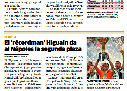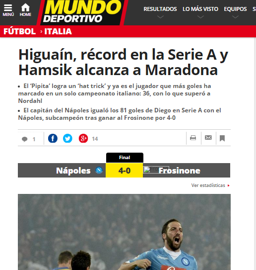 Ha avuto un enorme risalto mediatico, come prevedibile, l’hat-trick di Gonzalo Higuain con il Frosinone, che ha permesso al Pipita di scrivere una pagina importantissima nella storia del calcio italiano. Il delantero azzurro è stato celebrato in Spagna, in Argentina, in Francia e in Inghilterra in questo modo.