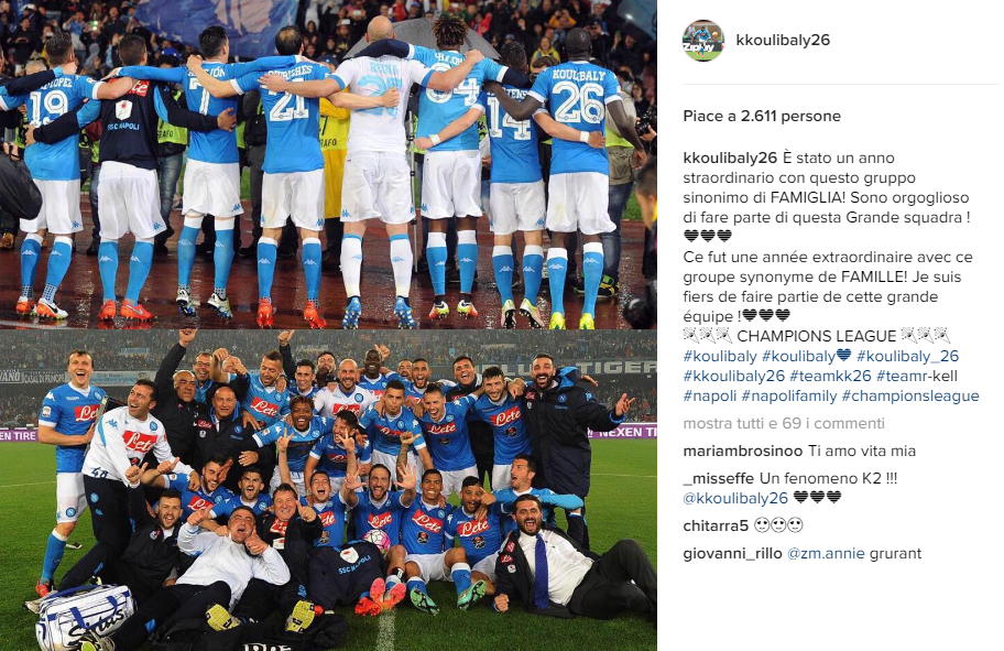 Kalidou Koulibaly ha pubblicato su Instagram un messaggio per la fantastica stagione degli azzurri: