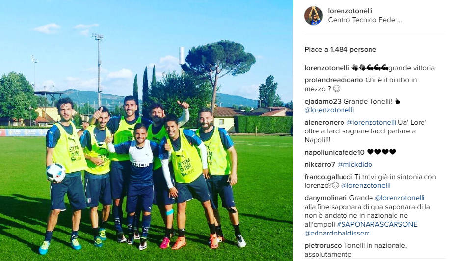Lorenzo Tonelli, futuro acquisto del Napoli, ha pubblicato su Instagram una foto dal ritiro di Coverciano insieme a Insigne ed altri compagni di Nazionale.