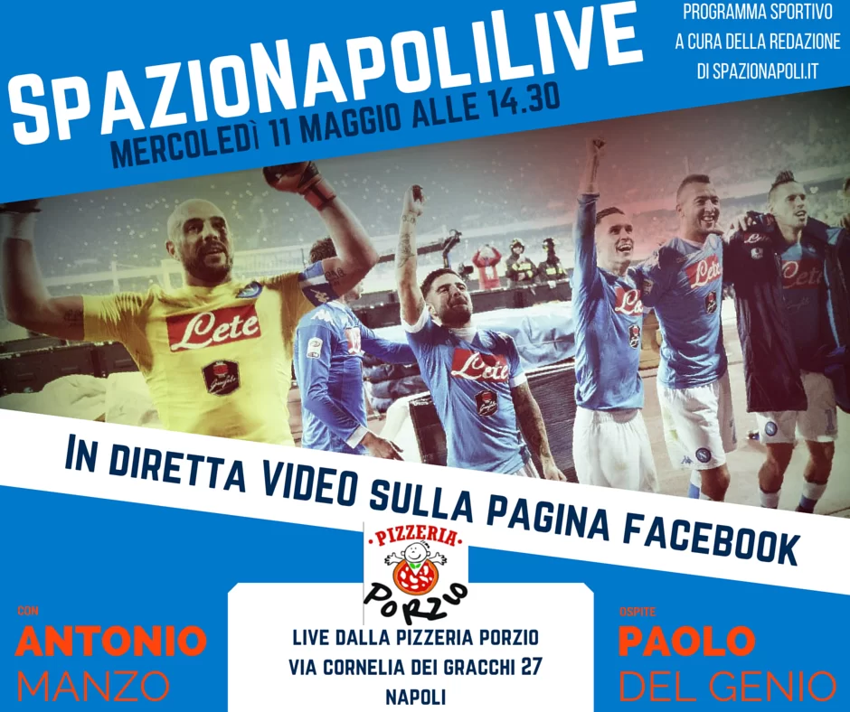 Nuovo appuntamento oggi alle 14,30 con la diretta Facebook di SpazioNapoliLive che vi terrà compagnia come di consueto dalla Pizzeria Porzio a Napoli. In conduzione il direttore di SpazioNapoli Antonio Manzo ed il collega Paolo Del Genio che per un’ora analizzeranno il momento del club di De Laurentiis, il mercato svelando tantissime indiscrezioni.