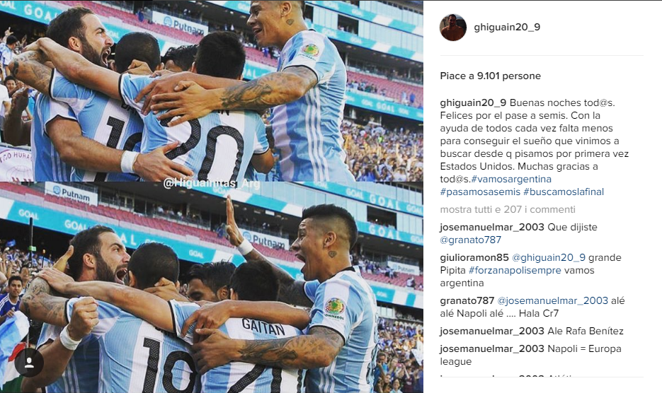 Gonzalo Higuain ha espresso tutta la sua gioia dopo la vittoria ai quarti di finale di Copa America contro il Venezuela.