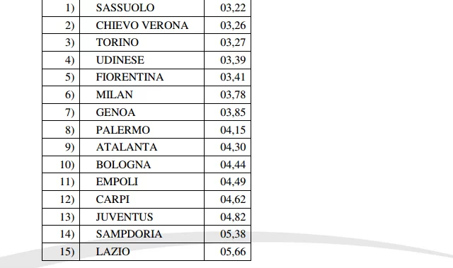 La Lega ha inoltre pubblicato la classifica relativa al trofeo fair play “Gaetano Scirea”: al comando ancora una volta il Sassuolo, a pari punti con Empoli e Chievo. Per il Napoli altro sedicesimo posto davanti a Roma, Lazio, Inter e Verona.