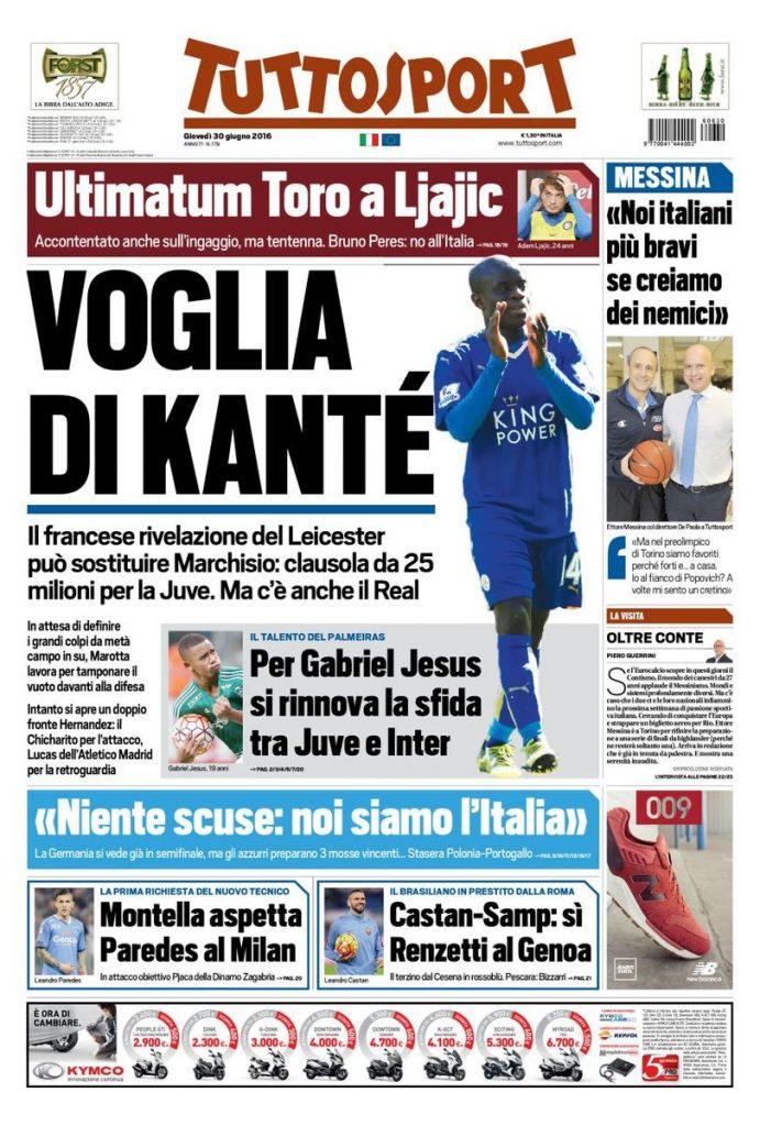 Le prime pagine dei quotidiani sportivi odierni si concentrano principalmente sulla questione riguardante Gonzalo Higuain che, dopo le parole di suo fratello-agente, è diventato il pezzo pregiato di questo mercato. Il Corriere dello Sport riporta della grandissima volontà di Simeone di portare il Pipita a Madrid per farne il simbolo del Cholismo e per conquistare finalmente la Champions League. Anche il quotidiano spagnolo Marca evidenzia l’interessamento dell’Atletico per l’attaccante argentino che, però, è in staffetta con altri due grandi bomber; ovvero Aubameyang e Diego Costa.