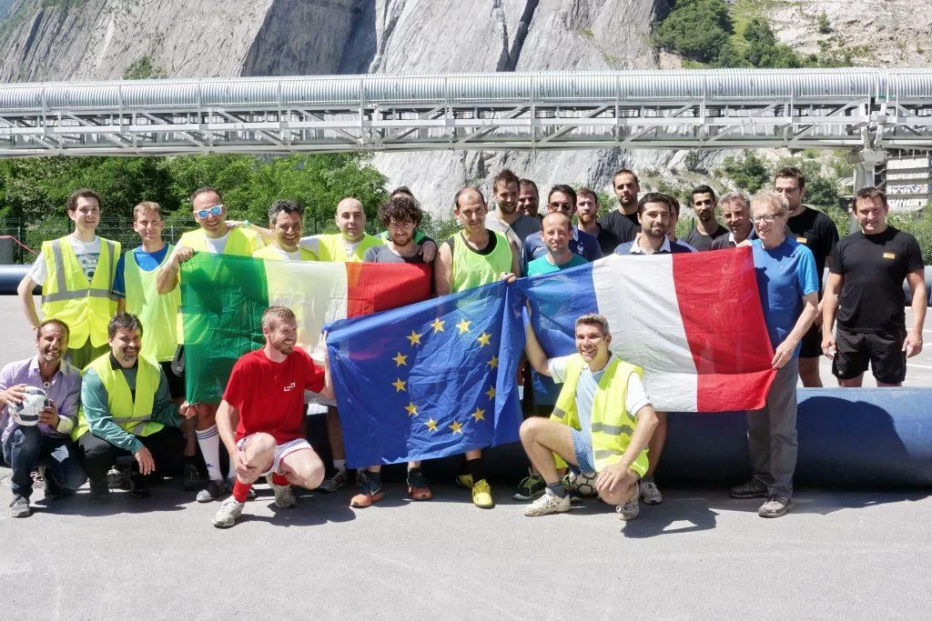 In un clima di festa, con il campo circondato da bandiere dell’Europa e dei due Paesi, gli ospiti hanno vinto per 4 reti a 2. Intanto in galleria sta terminando il montaggio della fresa Federica, che scaverà i 9 km nell’asse e nel diametro del tunnel di base del Moncenisio.