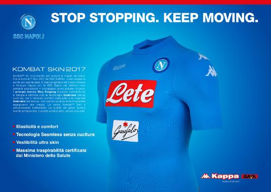 Il Napoli ha presentato questa mattina le nuove maglie. Attraverso il proprio sito, il club racconta le caratteristiche delle nuove divise: Ora la Kombat Skin 2017 del SSC NAPOLI vuole rendere la partita più spettacolare. È stata progettata dal Centro Ricerca e Sviluppo Kappa con la SSC Napoli per definire nuovi standard prestazionali e incoraggiare nuove abitudini di gioco. Il principio tecnico Stop Stopping(funzione antitrattenuta) si integra e rafforza con la tecnologia Seamless(senza cuciture), per il massimo comfort sulla pelle, e le proprietà Untenable del tessuto, che rendono impossibile aggrapparsi alla maglia. La nuova Kombat è semplicemente inafferrabile. La qualità del gesto tecnico diventa protagonista E questo cambia tutto, ancora una volta.