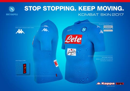 Il Napoli ha presentato questa mattina le nuove maglie. Attraverso il proprio sito, il club racconta le caratteristiche delle nuove divise: Ora la Kombat Skin 2017 del SSC NAPOLI vuole rendere la partita più spettacolare. È stata progettata dal Centro Ricerca e Sviluppo Kappa con la SSC Napoli per definire nuovi standard prestazionali e incoraggiare nuove abitudini di gioco. Il principio tecnico Stop Stopping(funzione antitrattenuta) si integra e rafforza con la tecnologia Seamless(senza cuciture), per il massimo comfort sulla pelle, e le proprietà Untenable del tessuto, che rendono impossibile aggrapparsi alla maglia. La nuova Kombat è semplicemente inafferrabile. La qualità del gesto tecnico diventa protagonista E questo cambia tutto, ancora una volta.