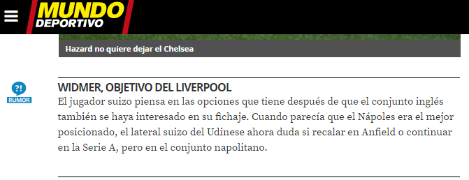 A riportare la notizia è l’edizione online del Mundo Deportivo, sottolineando come il calciatore stia valutando le varie opzioni dopo l’inserimento dei Reds. Il tutto quando sembrava che il Napoli fosse a un passo dal calciatore svizzero. E ora Widmer sta valutando se restare in Serie A con la maglia del Napoli o se provare l’esperienza in Premier League.