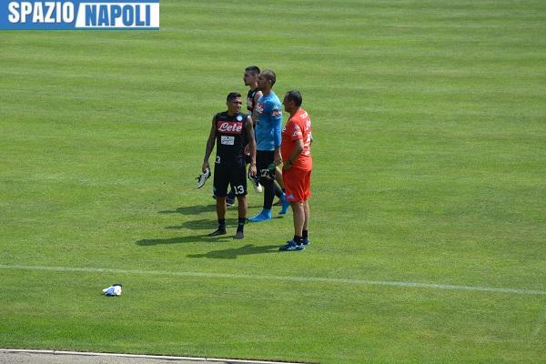 Terzo giorno di ritiro per il Napoli che a Dimaro continua il lavoro di preparazione in vista della prossima stagione. Mattinata intensa per gli azzurri, agli ordini di un Maurizio Sarri ancor più maniacale e meticoloso dello scorso anno. Il tecnico, infatti, continua a curare il tutto nel minimo dettaglio, intrattenendosi anche coi calciatori per spiegare loro movimenti e migliorie da apportare. Grande attenzione alla fase difensiva, come da prassi. Lavoro poi su possesso palla e pressing. Ancora assenti Reina, Albiol e Tonelli. Bel clima in quel della Val di Sole, coi tifosi che non mancano di far sentire il loro supporto a tecnico e calciatori. Proprio con Maurizio Sarri c’è stata una gran bella scena a fine allenamento (CLICCA QUI PER APPROFONDIRE).