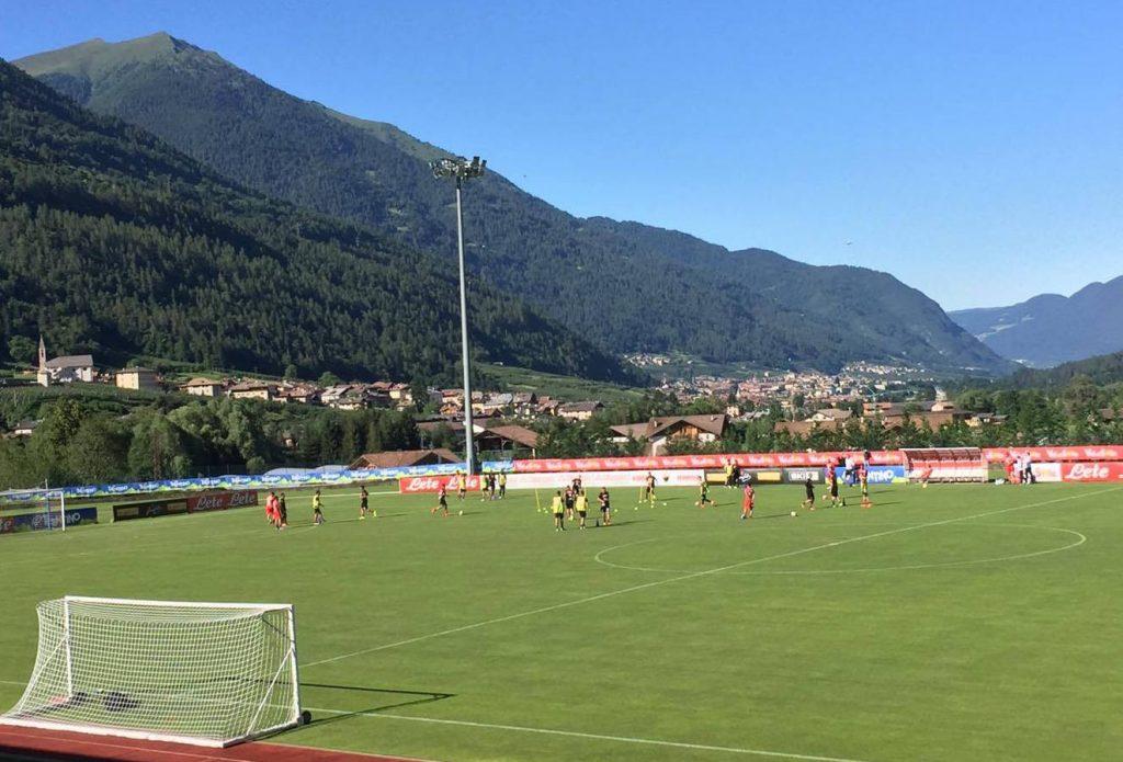ORE 18.50, PROVE SCHEMI – Si curano i particolari a Dimaro. Lo staff tecnico guida il gruppo al rodaggio di alcuni schemi da rimessa laterale;