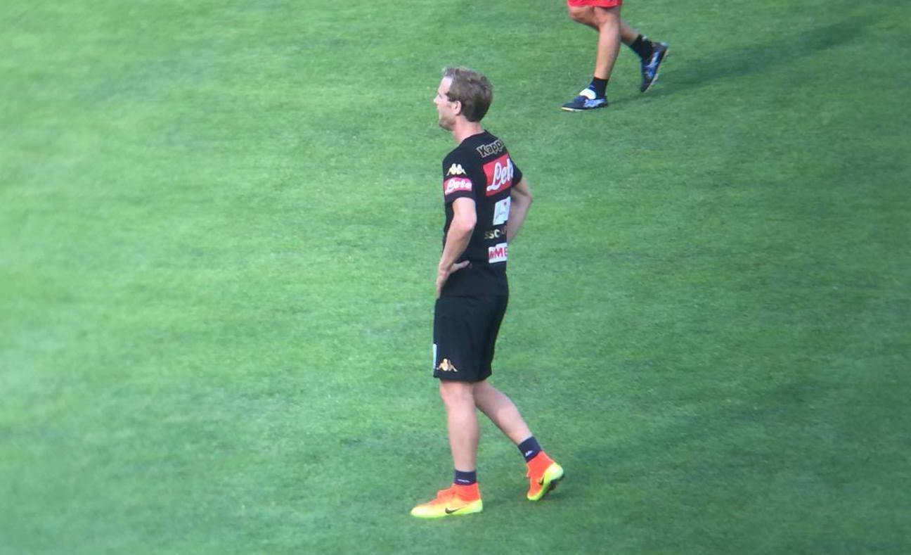 ORE 17.45, ALLAN E EL KADDOURI A PARTE – Si allenano a parte, rispetto al gruppo, Allan ed El Kaddouri. I due centrocampisti azzurri eseguono degli esercizi atletici a bordo campo con un componente dello staff tecnico;