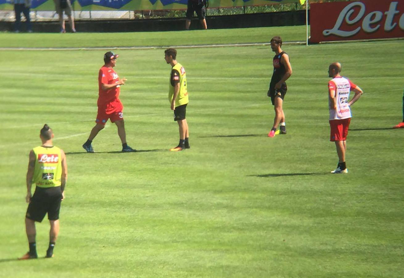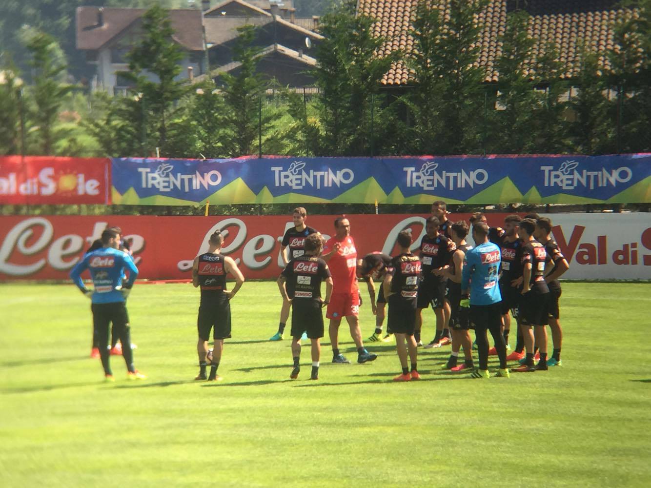 ORE 10.55, PROSEGUE IL LAVORO TATTICO – A Dimaro prosegue il lavoro tattico sulla manovra offensiva. Maurizio Sarri attentissimo a telecomandare i movimenti di tutti calciatori. Spesso gli esercizi vengono interrotti da spiegazioni ad alta voce del tecnico azzurro;