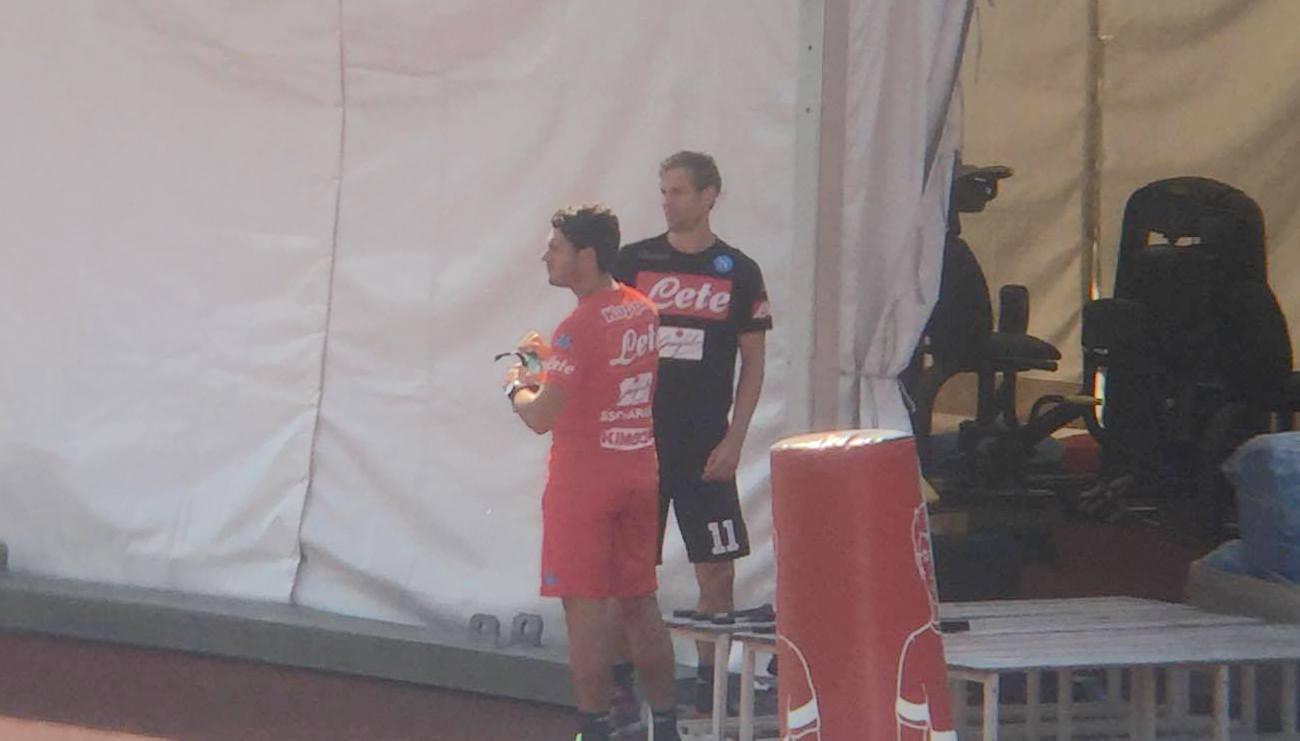 ORE 11.00, PROVE DI TIRO – Dopo il lavoro tattico, si passa a quello tecnico. Gran parte del gruppo si esercita con conclusioni dalla media distanza per perfezionare la tecnica di tiro. Nel frattempo, Maurizio Sarri lascia il campo d’allenamento;