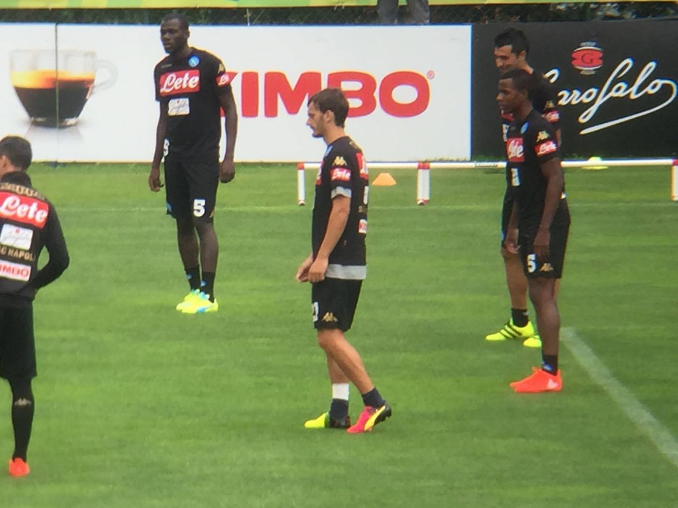 ORE 11.05, GHOULAM-KOULIBALY – Si ripete un accoppiamento in allenamento già visto nei giorni scorsi: Faouzi Ghoulam dalla bandiera del corner a crossare, Kalidou Koulibaly a saltare in area di rigore. Prove generali da calcio d’angolo;