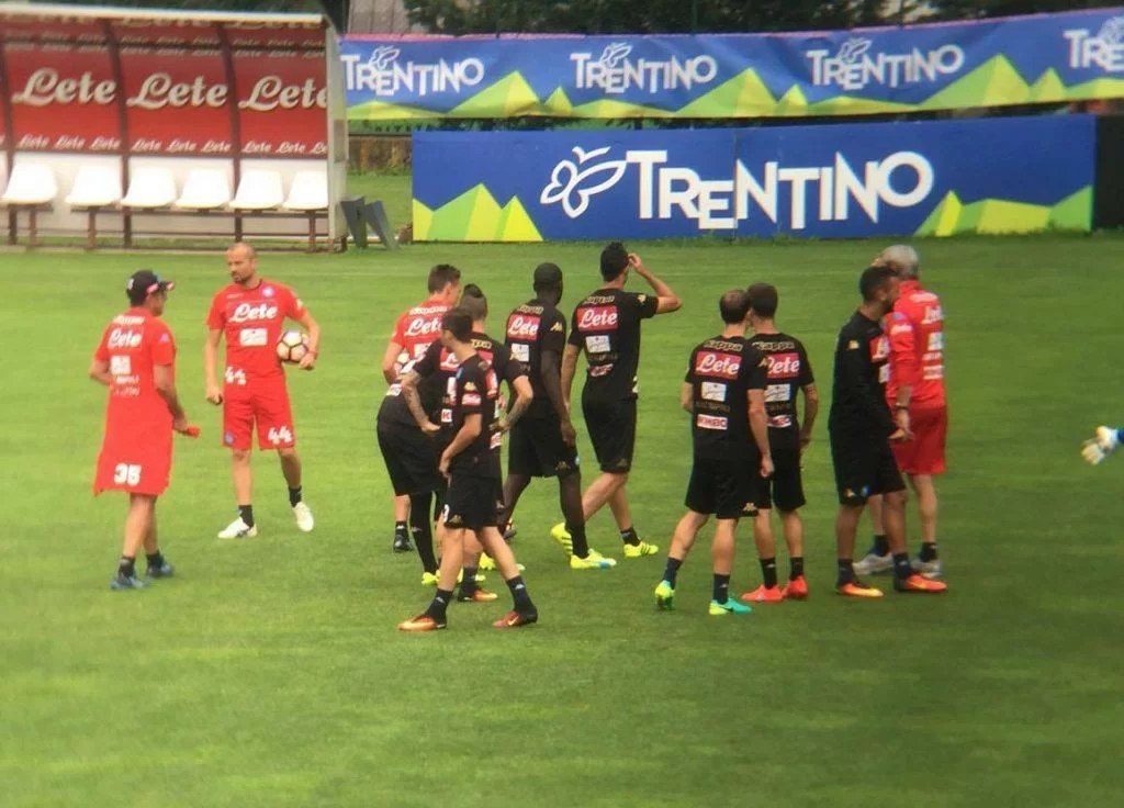 ORE 10.20, AL VIA LA PARTITELLA – Dopo gli esercizi atletici a bordo campo, al via una partitella a campo ridotto 11 contro 11. Il primo goal della partita è di Roberto Insigne;