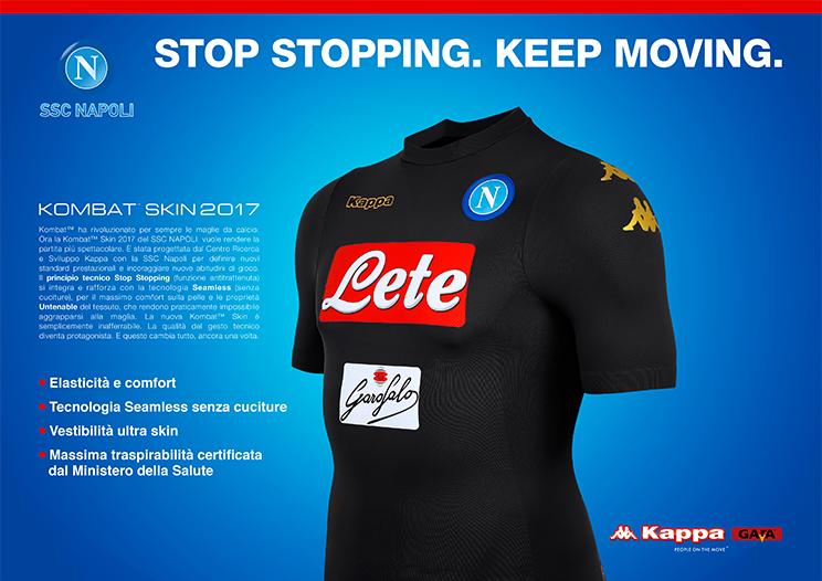 “Presentata oggi, giovedì 21 luglio – rigorosamente online su sscnapoli.it e sulle pagine Facebook, Twitter e Instagram del team partenopeo – la terza maglia Kappa per la stagione 2016-2017. La nuova Kombat™ Skin continua a rivoluzionare il mondo dell’abbigliamento tecnico sportivo: una maglia da calcio inafferrabile che integra il principio dello Stop Stopping (funzione antitrattenuta) con la proprietà Untenable del tessuto, rendendo impossibile aggrapparsi all’avversario“. (SCORRI IN ALTO LE IMMAGINI).