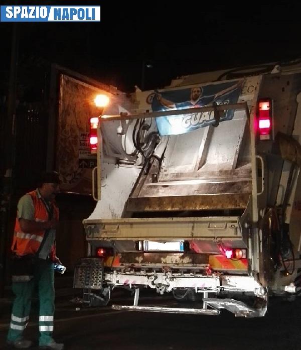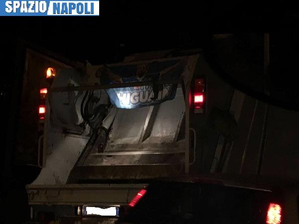 Come ad esempio un camion dell’immondizia che raccoglie rifiuti avendo la gigantografia di Higuain al suo interno (SCORRI IN ALTO LE FOTO).