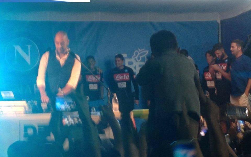 Da segnalare anche un particolare siparietto che ha come protagonista Marek Hamsik. Il capitano del Napoli – riferisce SKY Sport – è infatti salito sul palco ed ha alzato uno striscione con su scritto “Grazie a Dio sono napoletano”, scatenando l’euforia e i cori della piazza. Il capitano azzurro si è commosso, ringraziando i tifosi presenti (SCORRI IN ALTO LE FOTO).