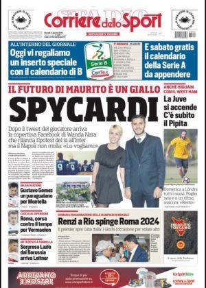 L’edizione odierna de Il Corriere dello Sport si focalizza in prima battuta su quella che è la trattativa per Mauro Icardi, che nonostante i numerosi tweet di amore verso l’Inter, sembra non aver ancora chiuso la porta ad un trasferimento. Il Napoli comunque non molla.