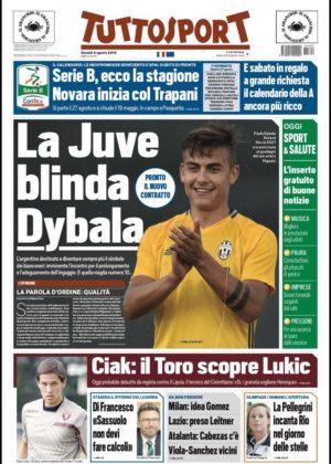 Il quotidiano torinese Tuttosport si concentra sulla Juventus e Paulo Dybala, con la società bianconera intenzionata a rinnovare il contratto del proprio calciatore.
