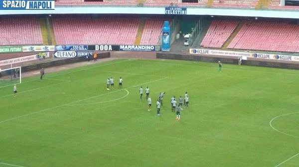 I due neo-acquisti del Napoli, Piotr Zielinski e Arek Milik cominceranno dalla panchina. Pochissimi spettatori presenti al San Paolo: sono solo 6000.