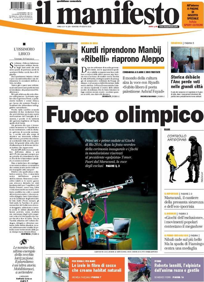 Il Manifesto, invece, lascia spazio ai Giochi Olimpici, parlando per l’appunto di “Fuoco Olimpico”.