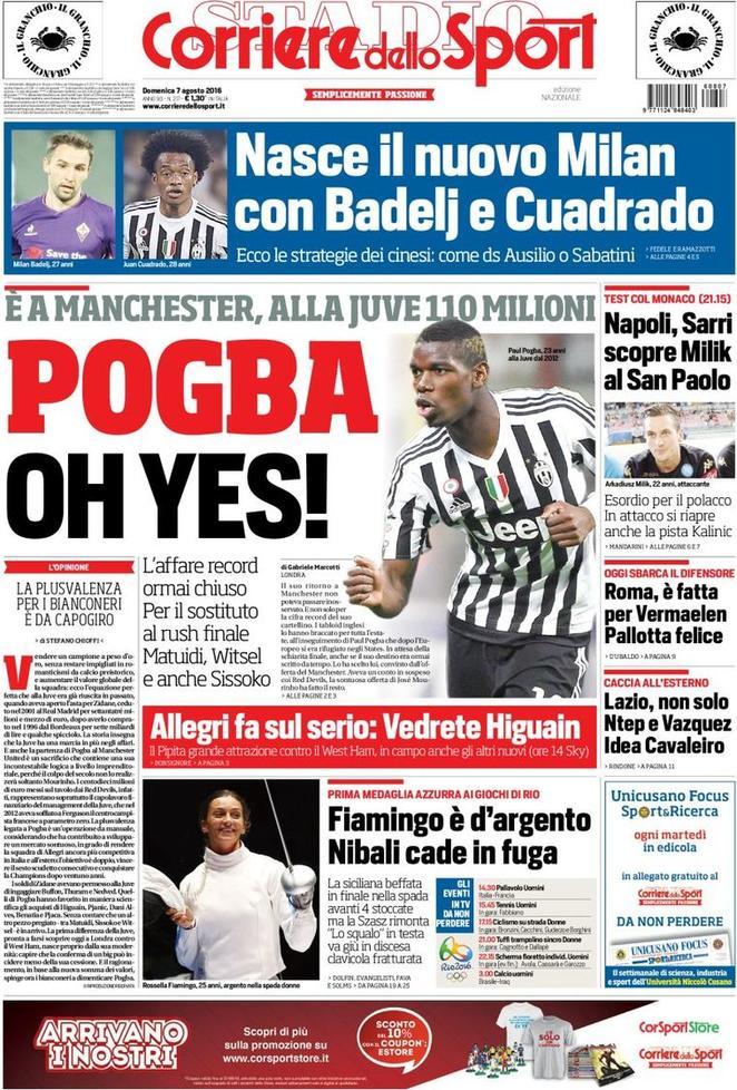 È il turno poi del Corriere dello Sport, che invece dedica la sua apertura a Paul Pogba, ormai ad un passo dal rivestire la maglia del Manchester United: entro lunedì è attesa l’ufficialità.