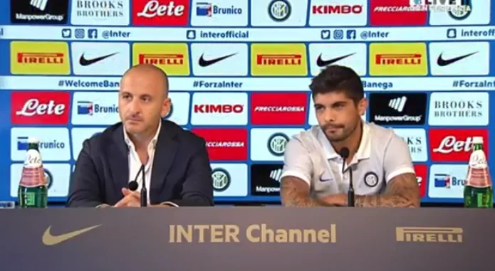 Ever Banega, neo acquisto per il centrocampo dell’Inter, è stato presentato ufficialmente alla stampa nel centro sportivo Angelo Moratti di Appiano Gentile.