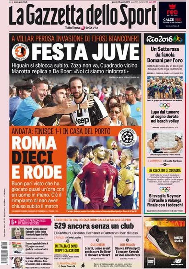 Ampio spazio alla Juventus, con protagonista il Pipita Gonzalo Higuain, ribattezzato gentilmente Golzalo dopo la prima rete in maglia bianconera, nell’amichevole in famiglia tra Juventus A e Juventus B in quel di Villar Perosa.
