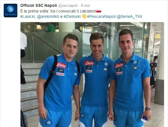 Sarri per questa delicata sfida ha convocato 23 giocatori (LEGGI QUI L’ELENCO COMPLETO) e proprio oggi avviene un evento storico per la SSC Napoli. Infatti, come ha riferito lo stesso club sul proprio account Twitter, per la prima volta nell’elenco sono presenti ben 3 calciatori polacchi: Milik, Zielinski e Lasicki.