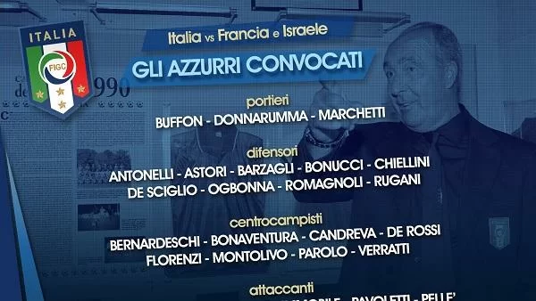 Divulgate pochissimi minuti fa le convocazioni del neo Ct dell’Italia Ventura per i prossimi impegni contro Francia ed Israele.