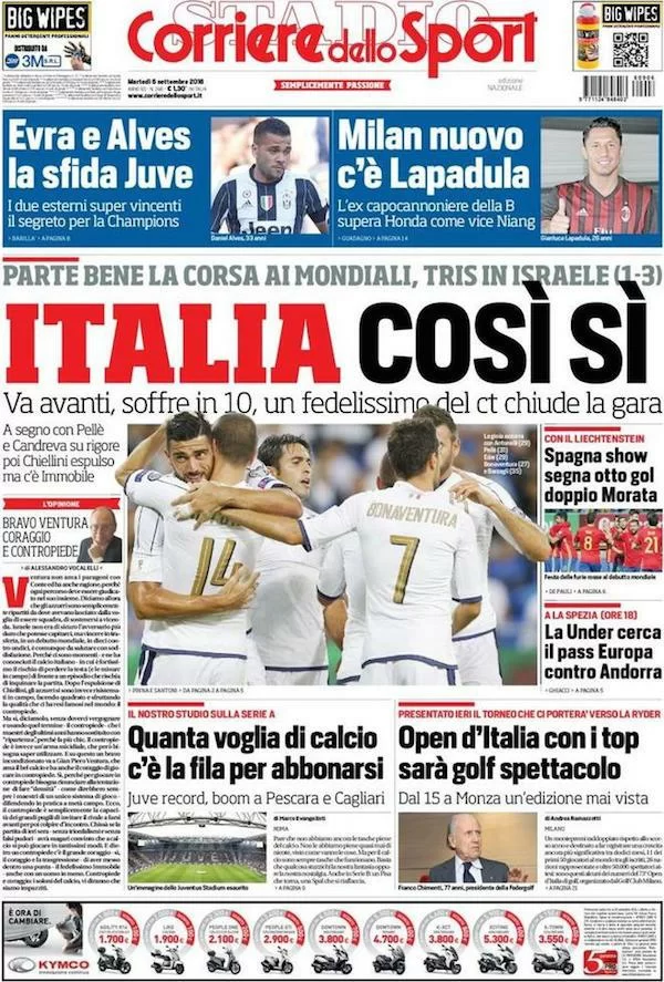 CORRIERE DELLO SPORT: “Italia, così sì”