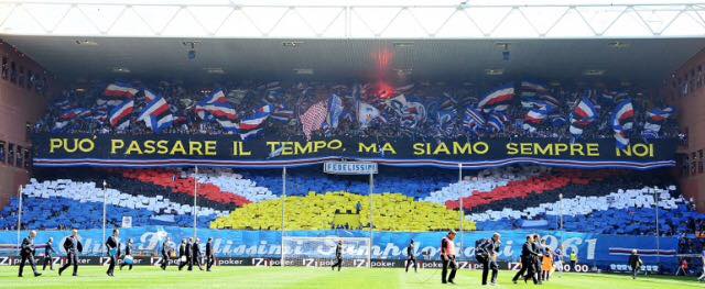 14. Genoa – Sampdoria, 14 aprile 2013: Festa a Marassi, lo spettacolo del derby della Lanterna. Genoa e Samp pareggiano 1-1, meraviglioso lo scambio di coreografie ad inizio partita. Per i blucerchiati, un sole che sorge in un cielo dei propri colori. E quella frase “Può passare il tempo ma siamo sempre noi”.