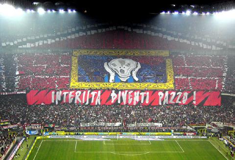 4. Milan – Inter, 24 ottobre 2004: storie di derby e rivalità di vecchia data, una città divisa in due cuori a tinte diverse: il rossonero da una parte, il nerazzurro dall’altro. Quando sorride una l’altra piange, e viceversa. E la Curva del Milan saluta così i cugini dell’Inter: “Interista diventi pazzo”, con l’urlo di Munch stampato al centro.
