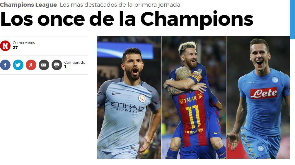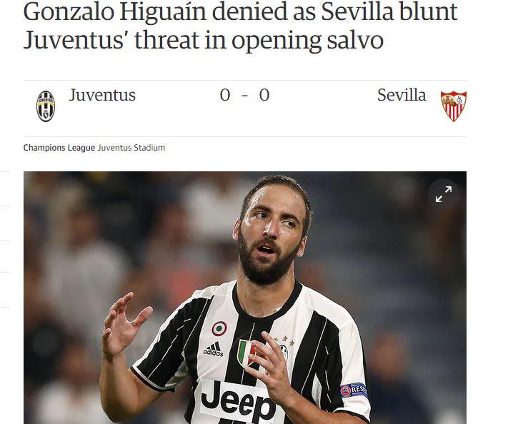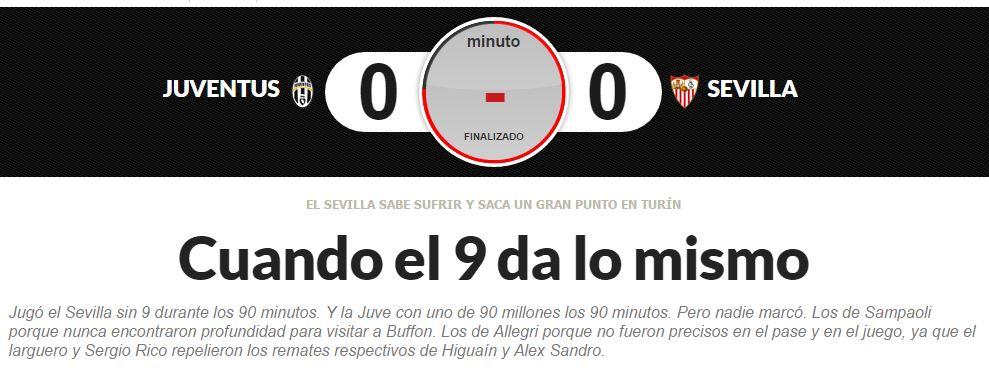 Dalla Spagna Marca attacca senza mezze misure il numero 9 argentino “jugó el Sevilla sin 9 durante los 90 minutos. Y la Juve con uno de 90 millones los 90 minutos” a indicare come, nonostante l’enorme cifra spesa, la differenza tra il giocare senza un centravanti di ruolo e uno da 90 milioni non abbia influito sul risultato. Sempre Marca invece esalta la prova di Milik inserendolo tra i top 11 della prima giornata di Champions League.