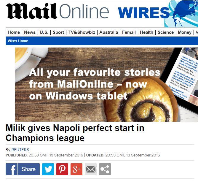 Anche dall’Inghilterra non cambia la musica, se secondo il Daily Mail Arek Milik ha regalato al Napoli il “perfect start” con la sua doppietta, diverso è stato l’impatto di Gonzalo Higuain la cui prova è stata definita dal The Guardian “ampiamente anonima” sottolineando ancora come non ci si aspetta questa prestazione da un calciatore pagato 90 milioni di euro.