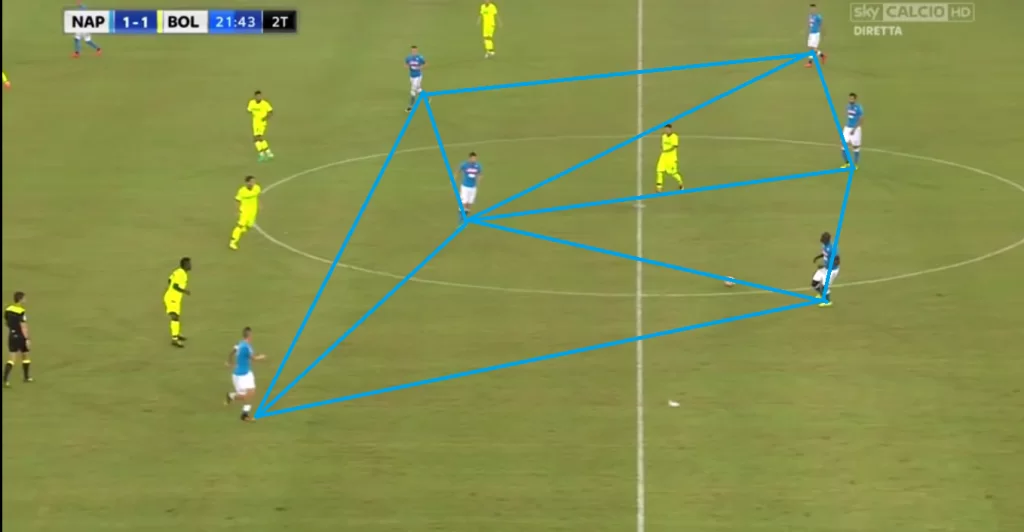 Continua il percorso di crescita del Napoli 2.0 di Maurizio Sarri. Anche contro il Bologna arriva una prestazione di alto livello. Volume di gioco impressionante per tutto il primo tempo, prima di palesare un calo significativo nei primi quindici minuti della ripresa, decisivi, tra l’altro, per la rete del momentaneo pareggio dei rossoblu. Un calo dettato, forse, più dalla stanchezza mentale e fisica che da superficialità vera e propria. Eppure, tutto ciò non avrà di certo reso felice il tecnico. Certo, quindici minuti di calo possono risultare decisivi, ma è altrettanto vero che gli azzurri, nei restanti settantacinque minuti, hanno dominato gara e campo, senza abbassare i ritmi, se non in momenti particolari del match e per volontà precisa degli undici in campo.