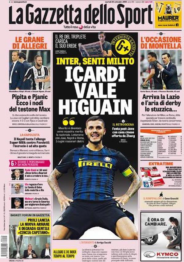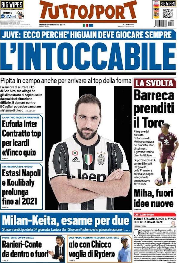 Sono on line le prime pagine di Tuttosport e della Gazzetta dello Sport.