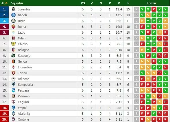 Un week end ricco di emozioni e gol quello della sesta giornata di serie A. Dopo gli anticipi del sabato che hanno visto le vittorie delle prime della classe Juventus e Napoli al cospetto di Palermo e Chievo, oggi non sono mancate le sorprese.