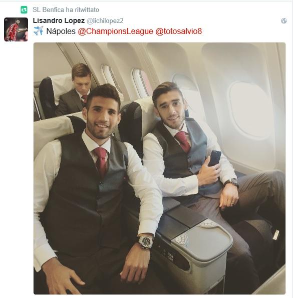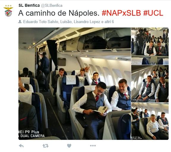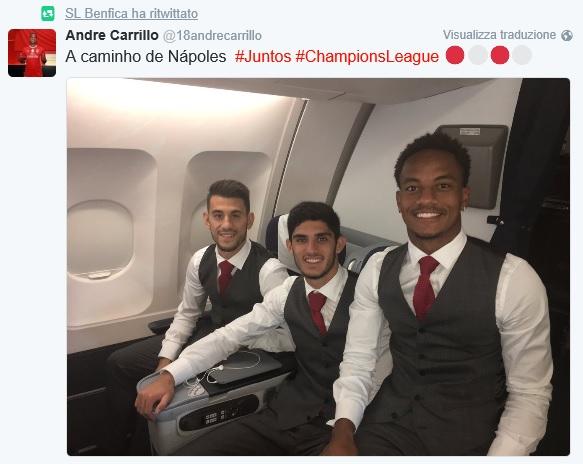Grande carica anche per il Benfica che così come scrive su Twitter, è appena partito alla volta di Napoli. Sorrisi e volti concentrati per i protagonisti immortalati in numerosi selfie raccolti nella nostra gallery e la curiosità di una gara affascinante e dalle mille sorprese.