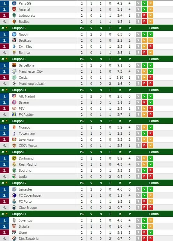 LA CLASSIFICA DEI GIRONI DOPO 2 GIORNATE: