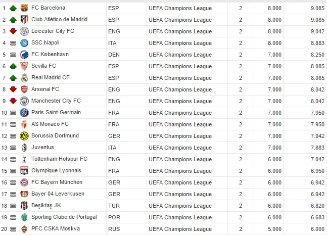 RANKING STAGIONALE (Dal sito ufficiale della Uefa):