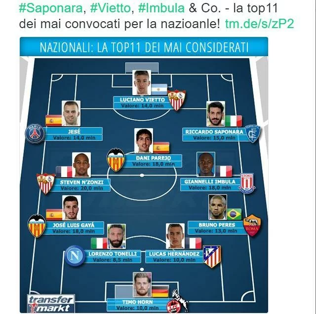Se agli occhi di qualcuno può apparire molto strana la mancata chiamata di Jorginho e Insigne in realtà per Transfermarkt sono molti di più i nomi dei calciatori mai considerati dalle proprie nazionali relativamente a partite e competizioni ufficiali. Ecco che il portale ha quindi sviluppato una TOP 11 di quelli che a loro parere sono i giocatori più validi (e costosi) non convocati, compaiono in questa speciale squadra anche due pupilli di Sarri (SCORRI IN ALTO LA FORMAZIONE).
