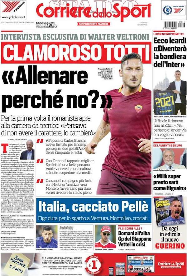 Corriere dello Sport: Clamoroso Totti: “Allenare, perché no?”