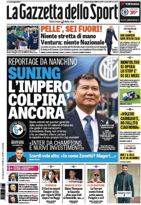 Gazzetta dello Sport: “Suning, l’impero colpirà ancora”.