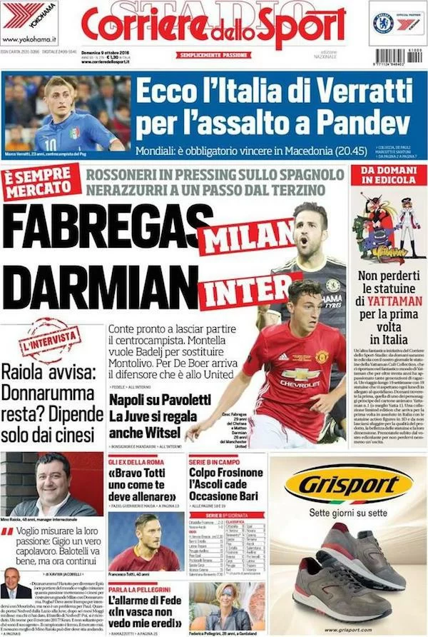 CORRIERE DELLO SPORT: “Napoli su Pavoletti. Raiola avvisa: Donnarumma resta? Dipende dai cinesi”.